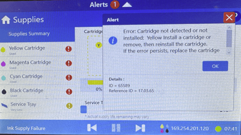 17.03.65 The yellow cartridge is not detected or not installed.