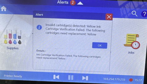 Invalid Cartridge(s) not detected…Cartridge Verification Failed.