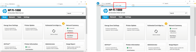 If HP FI-1000 Fixed Printhead appears, the BnB is up and running and can be accessed by its Hostname. The hostname is shown.