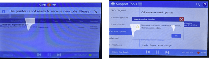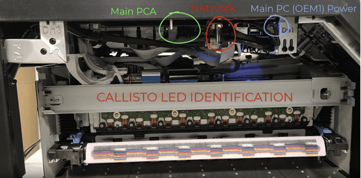 Watch the support video in the Callisto Support Library: Opening and Closing the Printer and LED Identification – Callisto Support Library