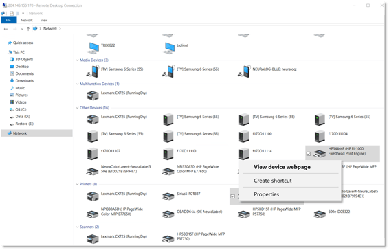 Right click on HP FI-1000 Fixed Printhead and select View device webpage.