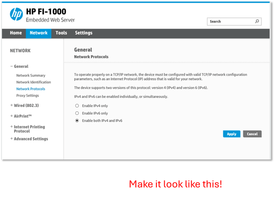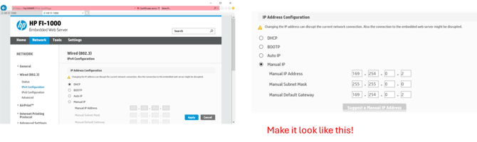 If this was the issue, and the IPV 4 address is successfully restored to 169.254.0.2, the printer will change to Printer Ready.