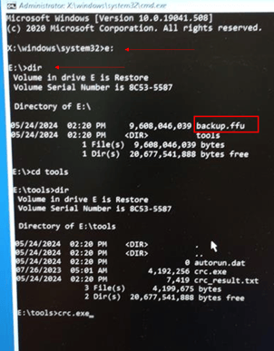 CHECK that backup.ffu file exists
