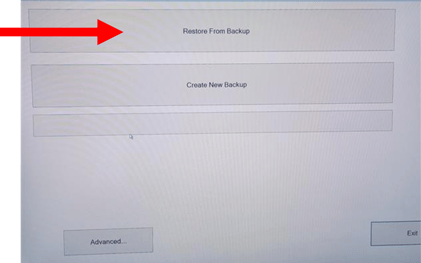 - CLICK ON Restore From Backup