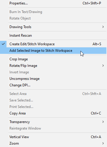 - Left Click on the LAS file and select Add Selected Image to Stich Workspace