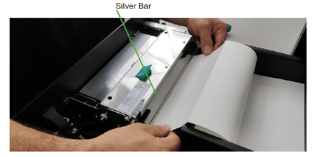 4. Feed the paper under the silver roller bar and into the back of the print engine.