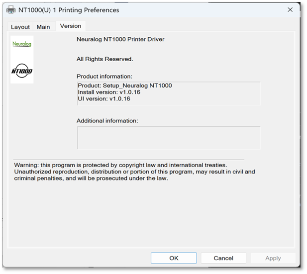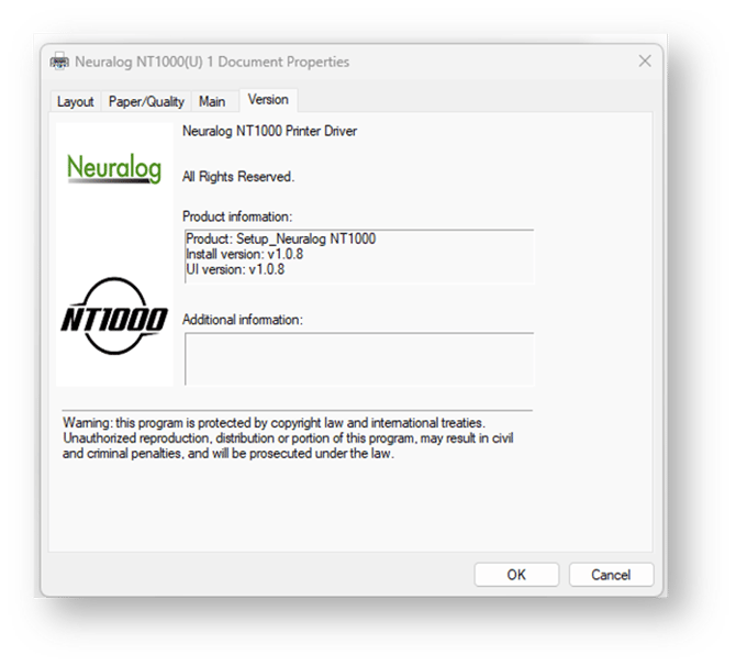 NT1000 Windows driver has added features, primarily quality and speed settings. There are also a few other changes.