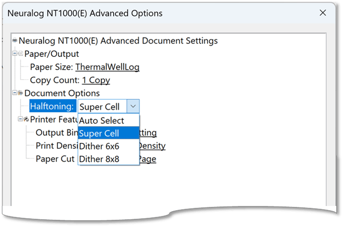 ADVANCED PANEL - NEW SECTIONSThe new Color Printing mode was added:· 256 Color (Halftoned) is the default · Monochrome is available Printer Features· Paper Type moved to Advanced Panel · Paper Cut Removed · Output Bin Removed.