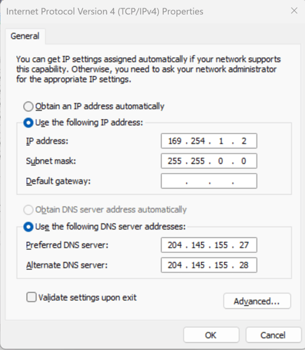 - Enter an address to match the printer network. Normally, the first three numbers match; the last number must be different to establish a unique address.